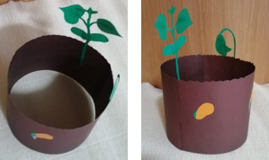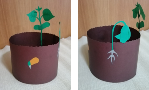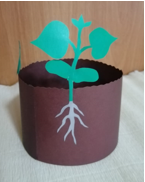 Модель процесса развития растения из семени можно сделать объёмной. На коричневой ленте из цветной бумаги, при помощи которой мы изображаем почву, расположите детали всех этапов процесса развития растения из семени. Затем склейте края, чтобы образовался круг.
