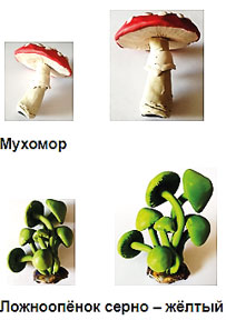 3. Используя атлас – определитель, вылепи из пластилина несколько съедобных и несъедобных грибов. Постарайся передать их отличительные признаки.