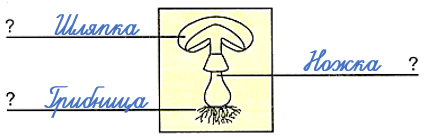 1. Называем, из каких частей состоит гриб. Находим эти части на схеме.