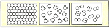 На рисунке мы видим частицы: твёрдого тела, жидкости, газа.