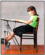 На второй фотографии девочка сидит неправильно. Она наклонилась над столом, наклонила голову и подставила под неё руку, ноги не стоят на подставке.