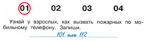 Узнай у взрослых, как вызвать пожарных по мобильному телефону. Запиши.