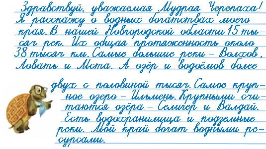 4. Мудрая Черепаха просит тебя рассказать ей о водных богатствах вашего края. Напиши ей письмо.