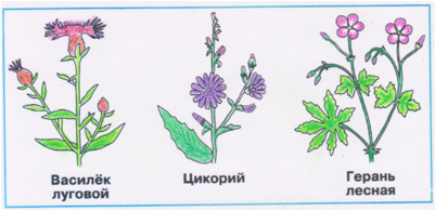 3. С помощью рисунка учебника раскрась растения. Постарайся правильно передать окраску их цветков!
