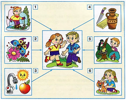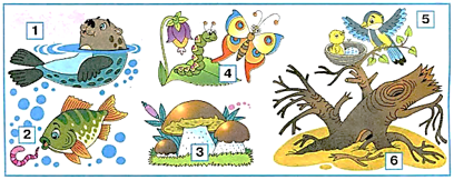 3. Прочитай второй абзац текста на с. 6. Папа Серёжи и Нади изобразил признаки живых существ с помощью забавных рисунков. Догадайся, какие признаки он имел в виду, и напиши их под соответствующими номерами.