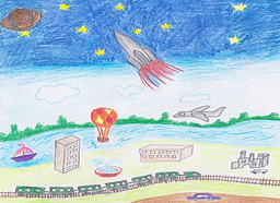 По земле ездят поезда, автомобили. Люди могут попасть на любом транспорте в любую точку мира. Это удивительно!