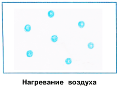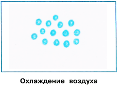 3. Изобразите с помощью схематического рисунка, как располагаются частицы воздуха при нагревании и охлаждении. (Частицы воздуха обозначайте кружочками.)