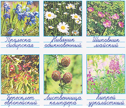 Для справок: лиственница Кемпфера, шиповник майский, кипрей узколистный, пролеска сибирская, нивяник обыкновенный, бересклет европейский.