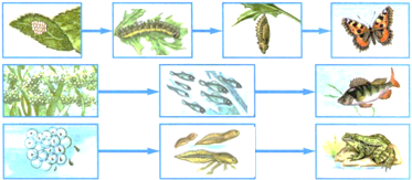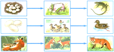У насекомых из яиц появляются ______________, а у птиц – _______________. У рыб из икринок выводятся ______________, а у лягушек и жаб – _______________. Звери рождают ________________ и выкармливают их _______________.