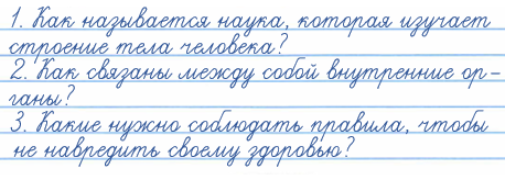1. Отвечаем, что хотелось бы узнать об организме человека и охране здоровья. Записываем свои вопросы и стараемся найти на них ответы при изучении раздела "Мы и наше здоровье".
