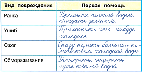 4. С помощью учебника заполни таблицу "Первая помощь при повреждениях кожи" (дай краткие формулировки).