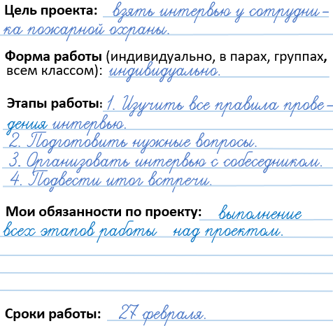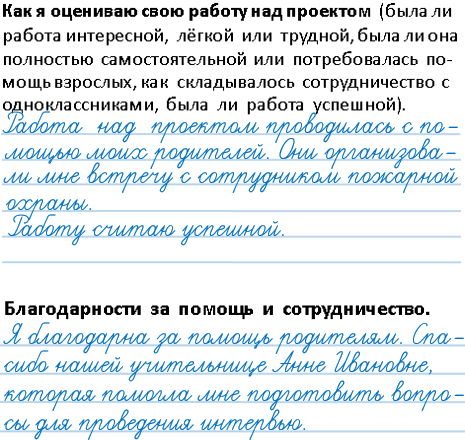 Как я оцениваю свою работу над проектом (была ли работа интересной, лёгкой или трудной, была ли она полностью самостоятельной или потребовалась помощь взрослых, как складывалось сотрудничество с одноклассниками, была ли работа успешной).  ______________________