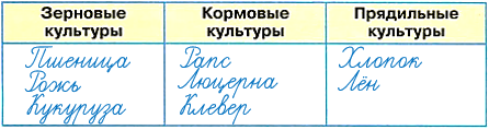 Записываем названия рассмотренных нами культурных растений: