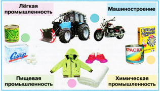 Отмечаем (закрашиваем кружок) соответствующим цветом товары, произведённые этими отраслями.