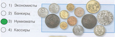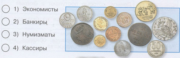 3. Рассмотри фотографию. Отметь (закрась кружок), кто коллекционирует и изучает такие монеты.