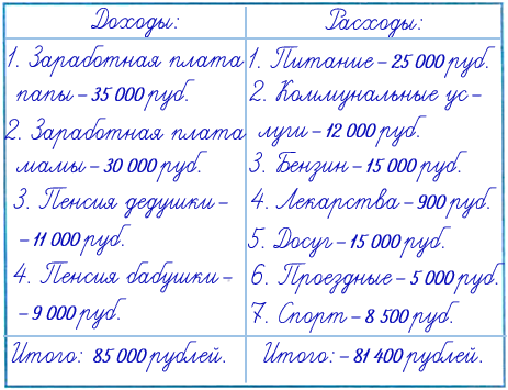 3. Составляем бюджет для семьи Серёжи и Нади.