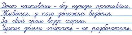 Подбери ещё 1 – 2 пословицы о деньгах и об отношении к ним.