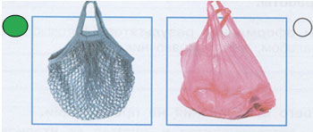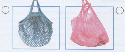 3. Отметь (закрась кружок), что экологичнее для покупок в магазине.