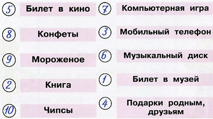 5. На что ты потратишь деньги? Пронумеруй расходы в порядке уменьшения их значимости для тебя.