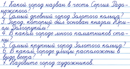 7. Записываем вопросы для викторины о городах Золотого кольца: