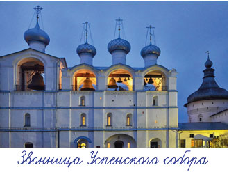 На территории ростовского кремля находится отдельно стоящая по древнерусской традиции звонница Успенского собора. Под куполами звонницы размещены 16 колоколов.
