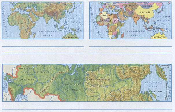 1) Узнайте географические карты по фрагментам. Подпишите названия карт. Попросите учителя проверить вас.