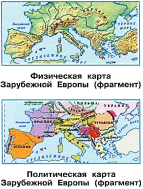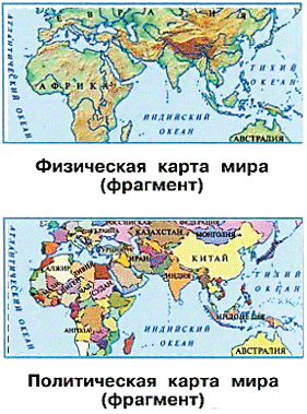 1) Узнайте географические карты по фрагментам. Вырежьте фрагменты карт из Приложения и расположите их в соответствующих окошках. Попросите учителя проверить вас. После проверки наклейте фрагменты.