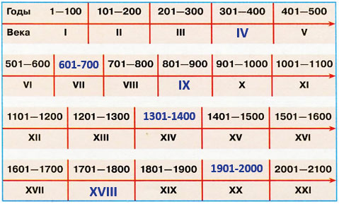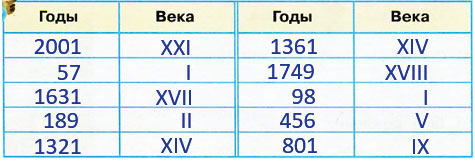 4. Мудрая Черепаха предлагает вам устроить друг для друга мини – экзамен, чтобы узнать, научились ли вы определять по году век. Пусть один ученик напишет в первом столбце таблицы любые годы, а другой определит по ним века и заполнит второй столбец. Затем поменяйтесь ролями и заполните третий и четвёртый столбцы таблицы. Проведите взаимную проверку и оцените свою работу.