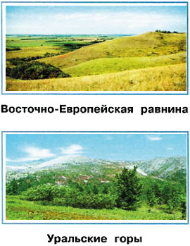 3. Научись узнавать равнины и горы по фотографиям. Вырежи фотографии из Приложения. Подумай, по каким признакам можно узнать эти географические объекты. Помести фотографии в соответствующие окошки. Попроси учителя проверить твою работу. После проверки наклей фотографии.