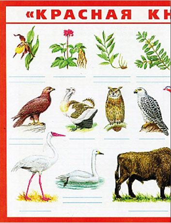 5. Папа Серёжи и Нади нарисовал плакат "Красная книга России" (в конце тетради). На нём показаны редкие растения и животные разных природных зон. Найди животных зоны арктических пустынь и подпиши их названия.