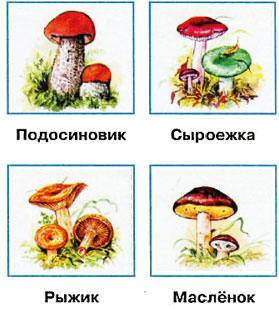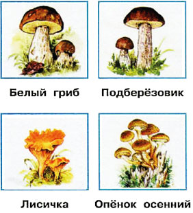 3. Знаешь ли ты грибы? Вырежи картинки из Приложения и расположи их в соответствующих окошках (не наклеивай!). Проверь себя с помощью атласа – определителя "От земли до неба".