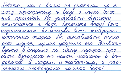 4. Пишем письмо своим сверстникам из других городов и сёл, призывающее бережно относиться к водным богатствам. В письме стараемся доказать, что водные богатства в любом уголке страны нуждаются в охране.