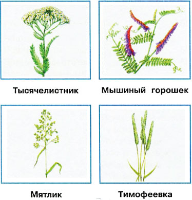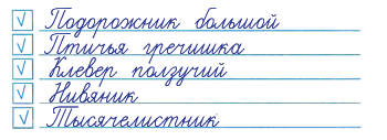 1. Записываем названия растений луга, которые удалось определить при работе с гербарием. Отмечаем галочкой названия тех растений, которые доводилось видеть в природе.