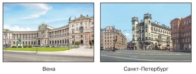 Здания на фото красивые и монументальные. Здание на фотографии Вены напоминает дворец, а постройка на фото Санкт-Петербурга - замок.