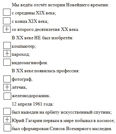 2. В каждом утверждении выберите правильный ответ и отметьте его знаком "+".