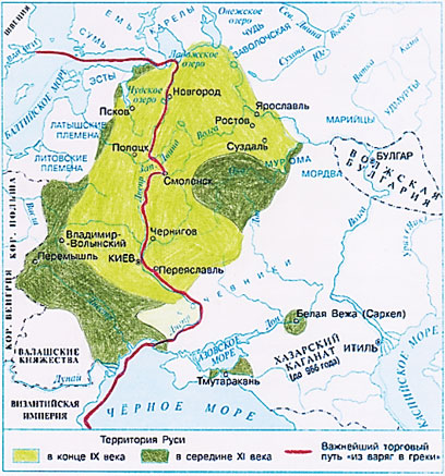 4. На контурной карте с помощью карты учебника (с. 25) раскрась территорию государства Русь: