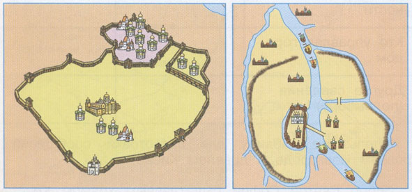- в центре городов находился главный собор или кремль, торговая площадь.
