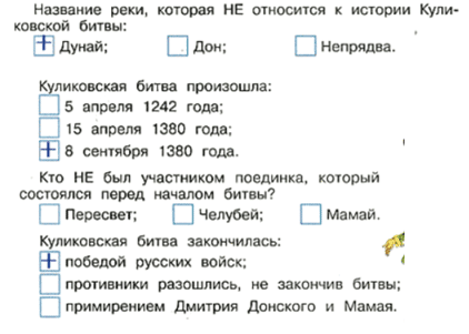 Куликовская битва произошла: 5 апреля 1242 года; 15 апреля 1380 года; 8 сентября 1380 года.