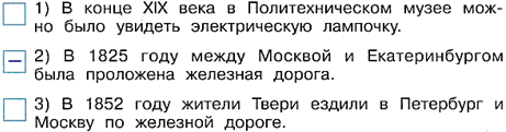 3) В 1852 году жители Твери ездили в Петербург и Москву по железной дороге.