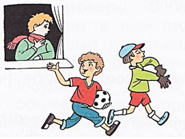 На первой иллюстрации мальчики торопятся играть в футбол, они пробегают мимо окна заболевшего друга. Я считаю, что мальчики сначала должны были навестить заболевшего, потом идти играть.