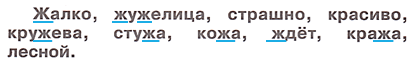 В этих словах повторяется буква "Ж". Пчеле легко было бы произносить слова: жалко, жужелица, кружева, стужа, кожа, ждёт, кража. Это потому, что пчела жужжит – ж – ж – ж! Ей легче всего произносить слова со звуком [ж].
