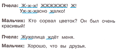 ♦ О чём можно разговаривать с пчелой? Прочитай диалог. И подчеркни букву, которую легко произносить пчеле.