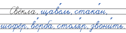 Зме|я, те|традь, пе|тух, чай|ник, шиш|ка, мо|роз, я|го|да, у|чи|тель, о|сень, я|бло|ко, ве|тер, за|яц, за|вод, по|су|да, про|щай, жизнь.