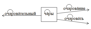 Найдите проверочное слово для каждой группы слов, расположите его в круге. Остальные слова расположите вдоль стрелок. В словах выделите корень и поставьте ударение.
