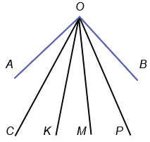 Угол АОВ на рисунке 103 разделён на 5 равных углов. Назовите углы, которые составляют
