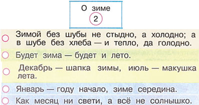 ♦ Прочитай пословицы и поговорки. О чём они рассказывают, какая тема каждой из них? Можно ли сказать, что все эти пословицы и поговорки о временах года? Распредели их на группы по темам. Дополни свои группы пословицами и поговорками из учебника "Литературное чтение" (страницы 16 – 17). В каком другом источнике информации можно найти пословицы и поговорки?