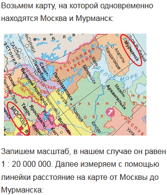 Найдите с помощью карты расстояние от Москвы до Мурманска.