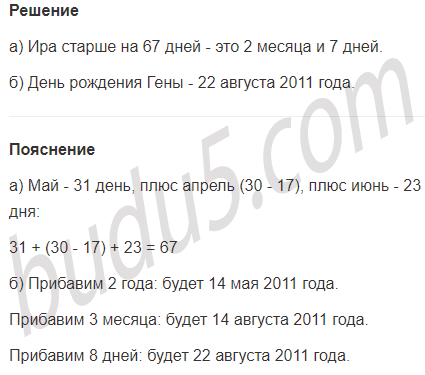 б) Сева родился 14 мая 2009 года, а Гена на 2 года, 3 месяца и 8 дней младше Севы. Когда день рождения у Гены?