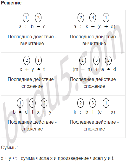 Задание № 7. Определи порядок действий и назови последнее действие. Прочитай сначала суммы, а потом - разности:
