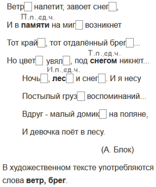 Найдите в стихотворном отрывке существительные, которые могут употребляться только в художественном тексте. Определите падеж и число выделенных имён существительных.